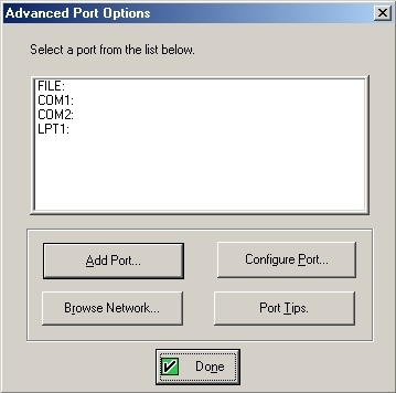 the printer port, and then click DONE.