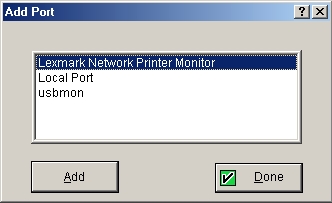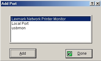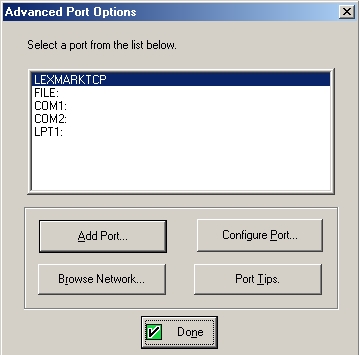 Click the "Add Port..." button to add a Lexmark TCP/IP