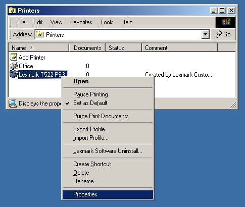 right click on the "Lexmark T522 PS3" and choose properties.