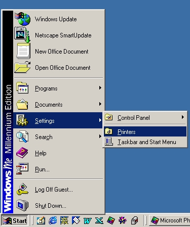 Open the "Printers" folder from settings on the start menu,