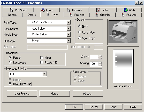 Paper Tab and choose the default paper type (A4), then tick