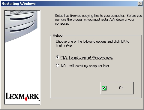 should not have to reboot if you already had a network lexmark